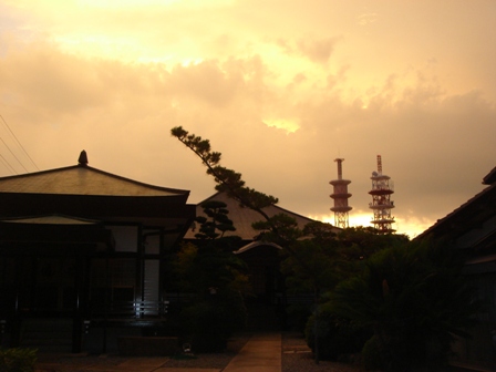 初盆法要が終わり、7時頃の空…なぜか黄色いです。記憶ではあまりお目にかかったことがありません。辺り一面、幻想的な雰囲気に包まれました。