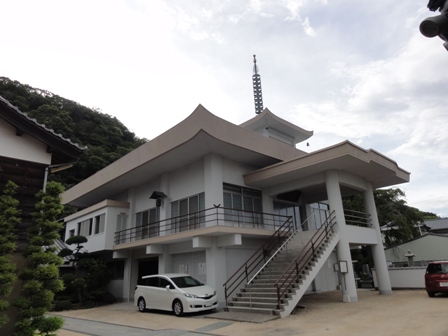 本堂です。2階建て鉄筋コンクリート造。2階部分が本堂で1階は駐車場になってます。