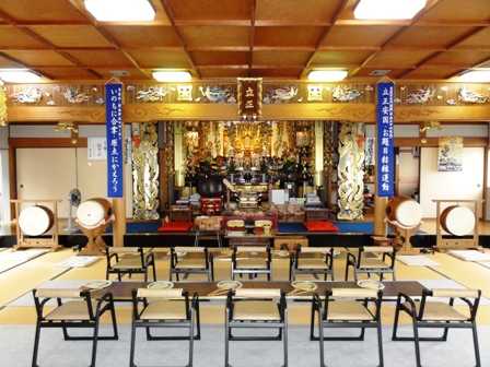 本堂内部。明日が信行会ということで椅子が並べられてます。