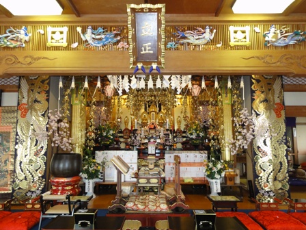立派に飾り付けられたご宝前。午前10時半より徳島県門中寺院総出仕により「法燈継承式」が盛大に執り行われました。