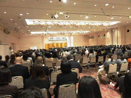 午後2時からロイヤルホテルにて行なわれた「保育を守る岡山集会」に参加しました。県内の保育園関係者、保育士など600名を超える大勢の参加がありました。