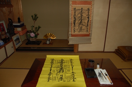 かなり前からお檀家さんに、ご自宅のお床に掛ける「御本尊」を頼まれていましたが、ようやく書写することが出来ました!