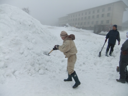 2011年02月28日(月) 住職ブログ 雪遊び・お別れ遠足 約2時間のスキー教室の間、野村交通の添乗員、運転手さんのご協力のもと「かまくら」をつくりました。園長(院首)と私もスコップを手に汗を流します。これが結構キツイです。
