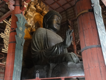 大仏鎮座。大仏殿は建立当寺は現在の建物よりもさらに大きかったとか。1000年以上前とは思えない、本当に圧倒されるばかりです。