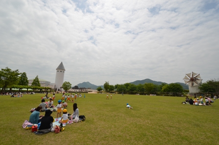 広大な芝生広場で昼食。すがすがしく気持ちいいですね。