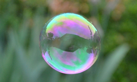 (画像のシャボン玉は先日、子供らが遊んでいたとき撮った写真です。よ〜く見てみると左右上下に鐘楼門、中央上下に庫裡が移っています。左右、上下が対称になっています。不思議ですね。)