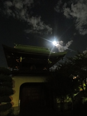 今宵は中秋の名月。本当に美しいですね。当山の鐘楼門も明るく照らし出されています。