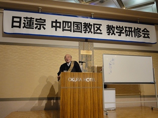 今日明日と2日間にわたって香川県丸亀オークラホテルで開かれている「中四国教学研修会」に参加しています。中四国9県から約90名の僧侶が参加しています。(岡山からは25名が参加)