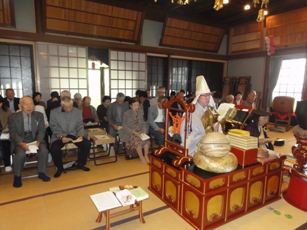 2011年11月06日(日) 住職ブログ 第730遠忌お会式〜報恩のお題目を一心に… 午後1時より日蓮大聖人第730遠忌お会式が厳修されました。心配だった天気もたいした崩れもなく、時折、小雨が降る程度でした。大勢の檀信徒と共に日蓮大聖人の往時を偲び、報恩の読経、お題目をお唱えしました。