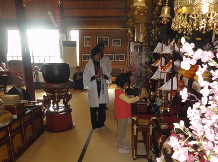 午前中、妙広寺様、浄安寺様2ヶ寺の団参が重なり、一時本堂は大勢の参拝者で一杯になりました。