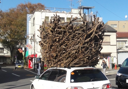 2011年11月24日(木) 住職ブログ 何に見えますか!? 先日、思わず目を疑うような車に遭遇しました!あっという間に通り過ぎましたが、周りの通行人も騒然としていました。中にはケータイカメラで写真を撮る人もいました。(私もそうですが…)何を載せているのでしょう?アート作品か何かでしょうか。