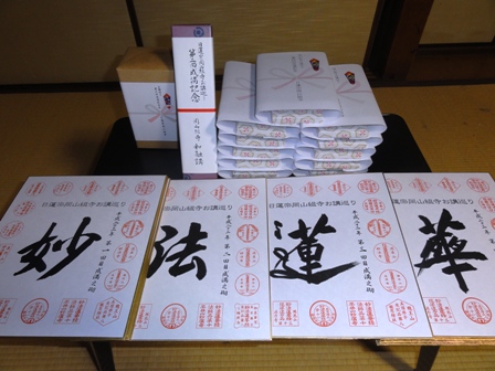 昨年11月の「お講巡り」成満者への色紙と記念品をお預かりしました。(1回目は色紙のみ)