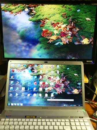 日頃の事務には大体このノートパソコンを使って行っていますが、パソコン用の23インチのディスプレイを追加してみました。