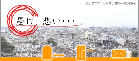 日蓮宗の大本山・池上本門寺では一周忌を迎える平成24年3月11日より、 犠牲者行方不明者約2万人への想いを、被災地に届けたいということで、ご協力を呼びかけています。