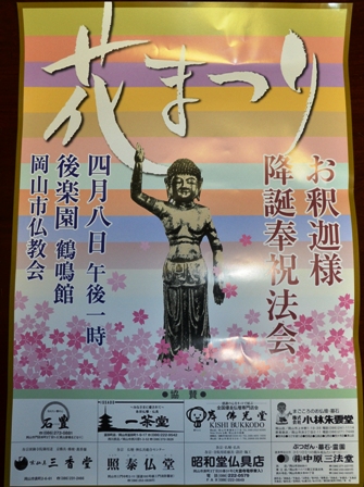 お釈迦様のお誕生を祝う「花まつり」が岡山市仏教会主催で4月8日に行われます。