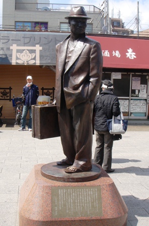 駅に降り立つと…寅さんがお出迎えしてくれました。昭和の時代に一気にタイムスリップしたような、そんな懐かしい思いがしました。(つづく)