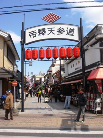 2012年04月06日(金) 住職ブログ 柴又帝釈天参拝記? 京成柴又駅の「寅さん像」に迎えられ、帝釈天までの約200mほどの参道が続きます。まるで昭和にタイムスリップしたような昔ながらの土産物屋、和菓子屋、飲食店などが軒を並べています。平日でしたが、予想以上に多くの観光客で賑わっていました。