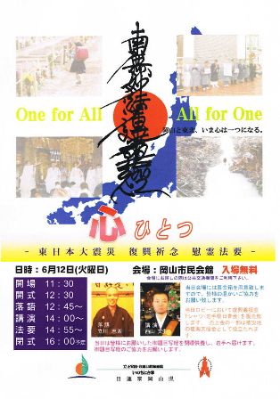 昨日、各地区総代さんに12日岡山市民会館で開催される「心ひとつ」東日本大震災慰霊・復興祈念法要(宗務所・修法師会主催)への参加のお願いをしてきました。