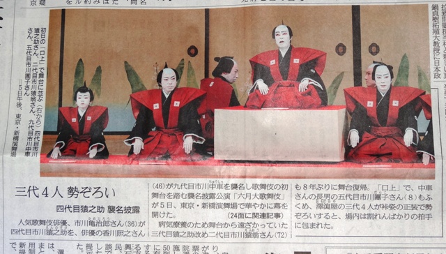 昨日、5日新橋演舞場で行われた大歌舞伎にて市川猿翁、市川猿之助、市川中車、市川團子の襲名披露興業が盛大に開幕しました。テレビで大きく取り上げられていましたね。