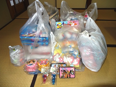 たちばな上中野保育園の夏祭りで使う景品を買いに行ってきました。