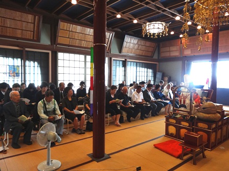 2012年07月29日(日) 住職ブログ 初盆法要 本年、初盆を迎えられるお檀家の皆様にお集まりいただき初盆法要を営みました。ここ連日、大変な猛暑が続いていますが、亡くなられた大切なご家族の供養のため、大勢のお参りがありました。毎年、この初盆の法要には普段お寺にお参りする機会が少ない若い世代や、お檀家の方も出席されますのでお盆の由来、お寺のこと、ご先祖のことなどを知っていただく絶好の機会でもありますね。