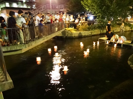 2012年08月17日(金) 住職ブログ 納涼の夕べ〜灯籠流しH24 日が暮れ、川面にゆれる無数の光は、ご先祖さまの御霊(みたま)そのもののようで、多くの人たちがいつまでも故人を偲び、頭を垂れ手を合わせる姿が印象的でした。お手伝いのお上人方、お参りの皆様ご苦労様でした。