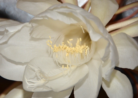 2012年09月28日(金) 住職ブログ 再び月下美人 暗くても夜行性の虫たちに見つけやすくするために目立つ白く大きな花を咲かせ、強いにおいをはなち、受粉しやすくするため雄しべとと雌しべは長く伸びているのだそうです。また夜咲くのは日中に開花する多くのライバルの花たちを避けるためだそうで、すべてにおいて種の保存、子孫を残すための本能が影響しているのだそうです。