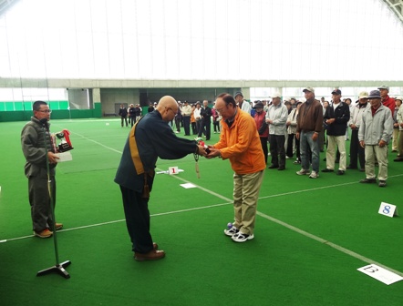 開会式では前回、優勝の当寺Aチーム(辰巳檀家)から代表の長瀬総代から優勝カップの返還がありました。