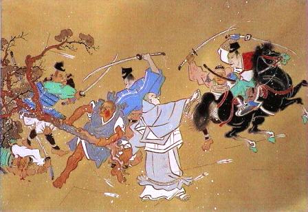 日蓮聖人がひたすら快癒を祈ったところ奇跡的に回復し、母梅菊の病状も落ち着きました。その後、信者の工藤吉隆の屋敷にお説教に向かわれる途中、念仏信仰者であった地頭の東条景信に襲撃されました。結果、弟子2人が亡くなり、2人が重傷、自らも左腕を折られ、眉間に三寸のきず疵を負われました。