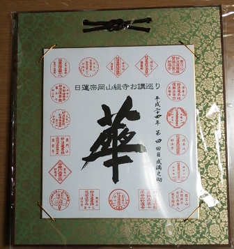 2012年12月26日(水) 住職ブログ お講巡り記念品 今回で9年目となりました。貸切バスを利用して2年かけて全19ヵ寺を回っていますので最初からの参加者は来年、あと1回で5回目の成満となります。いよいよ目前ですね。成満者と記念品…4回目1名(「華」の色紙とお経本とお経CDセット)、3回目1名(「蓮」の色紙とガラス製れんげぐい飲み)、2回目3名(「法」の色紙と輪島塗お箸)近日中に総代、役員さんを通じてお配りします。もうしばらくお待ち下さい。