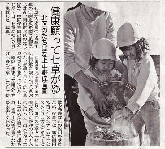 昨日、たちばな上中野保育園で行われた「七草粥」の記事が本日の産経新聞と朝日新聞の朝刊にそれぞれ掲載されました。