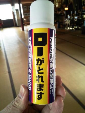2013年04月10日(水) 住職ブログ ローがとれました 「ローがとれます」という商品、何年も前から仏具のカタログ等で紹介されていたので気にはなっていましたが、「本当に取れるの?」「また今度買ってみよう」との思いが交錯し現在にいたっていました。その商品、先日いただきましたのでさっそく本堂で使ってみました。床や机に付着したろうそくのロウに向けこの除去剤を噴射、すると見る見るロウが剥がれていきました!以前はアイロンと新聞紙でこまめにきれいにしていましたが、なかなか最近は難しくなり、ロウの汚れが気になっていました。これなら手軽にできそうです。