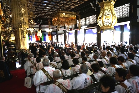 本堂いっぱいに埋め尽くされた檀家に見守られ帰山式が始ま...