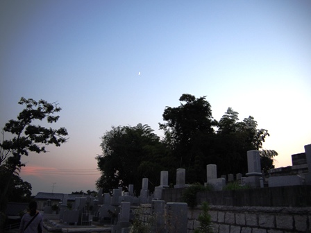 2013年08月12日(月) 住職ブログ お墓参りへ 夕暮れ、今日のお盆のお経回りを終え東山にある稲垣家のお墓参りに家族で行ってきました。先々代の日圓上人をはじめご先祖のお墓を掃除、お花を供え、線香をあげ読経を行いました。子供らもただ付いてくるだけではなく、すすんで水や線香をあげたり掃除を手伝ってくれています。日々の出来事や子供たちの成長を報告、感謝を申し上げ、お盆のご回向を捧げました。