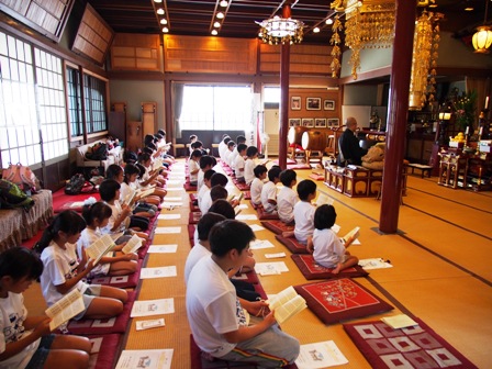 2013年08月27日(火) 住職ブログ てらこや「第2回イキイキ元気子どものつどい」後編 最後は本堂に再び移動し閉会式。午前中に習ったお経を読み最後を締めくくりました。どの子も集中して大きな声で読むことが出来ました。