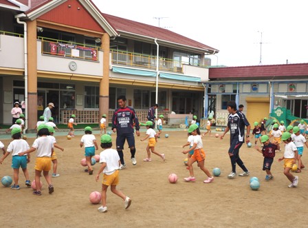 先月31日、たちばな上中野保育園でファジアーノ岡山サッカー教室が行われました。これは昨年に続いて3回目となります。