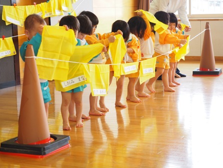 まだまだ小さい園児たちですので出来たり出来なかったりしますが、保育士の補助を受け元気に頑張っていました。