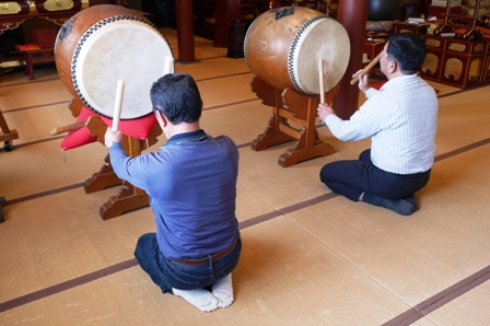 まず、本堂にてお経練習と久しぶりに太鼓練習を行いました。