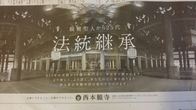 浄土真宗本願寺派新門主関連ニュース・京都新聞へ