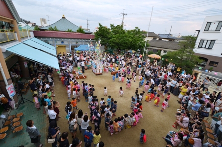 祭りの中身は例年通り、音楽合奏に続いて盆踊り、お神輿かつぎと園児らの元気いっぱいの様子に大変だった準備も報われたような気がします。