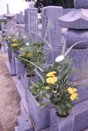 2014年08月12日(火) 住職ブログ お墓参り 夕暮れ、お経回りを終え、家族で東山へお墓参りに行ってきました。先々代の日圓上人をはじめご先祖のお墓を掃除、お花を供え、線香をあげ読経を行いました。子供らもただ付いてくるだけではなく、すすんで水や線香をあげたり掃除を手伝ってくれています。日々の出来事や子供たちの成長を報告、感謝を申し上げ、お盆のご回向を捧げました。
