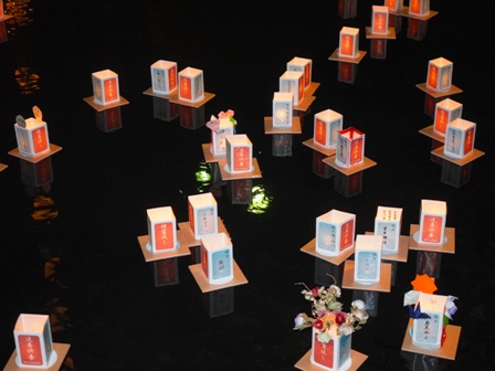 2014年08月17日(日) 住職ブログ 納涼の夕べ〜灯籠流しH26 日が暮れ、川面にゆれる無数の光は、ご先祖さまの御霊(みたま)そのもののようで、多くの人たちがいつまでも故人を偲び、頭を垂れ手を合わせる姿が印象的でした。