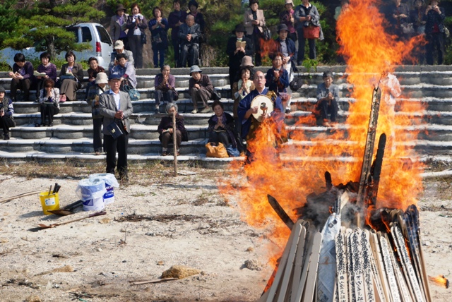 2014年10月09日(木) 住職ブログ H26川施餓鬼法要旅行・前編〜広島・呉市下蒲刈島(しもかまがりじま) 風がほど良くあったせいかお塔婆も勢いよく燃え上がりました。燃え上がる炎を見つめながら、参加者一同お経、お題目を一心に唱えご先祖、法界万霊に回向を捧げました。(後編につづく)