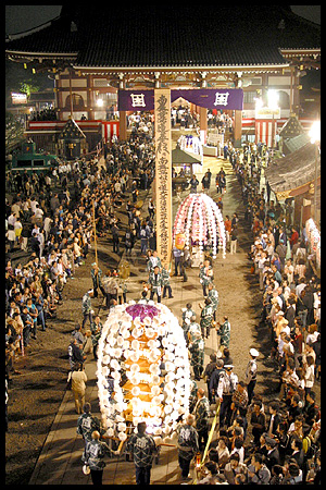 とくに12日お逮夜の万灯練供養には100基を超える万灯と30万人の人出で賑わいます。