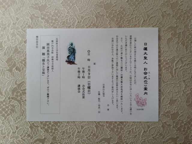 11月9日(日)のお会式までまだまだが日があると思っていましたが、早3週間を切ってしまいました。そろそろ準備を始めなければなりません。