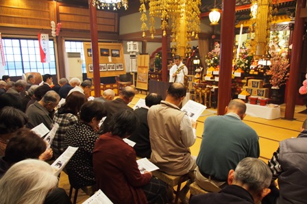 法要に引き続き岡山市北区蕃山町・本行寺御住職秋山事遷上人からご法話をいただきました。