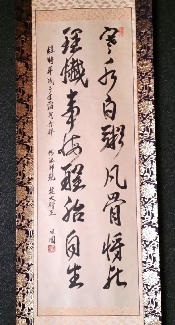 先々代・日圓上人が揮毫した書です。お曼荼羅はよく見るのですがこれは初めて見ました。お檀家の家に掛けられていたものです。