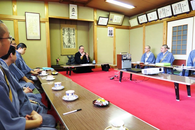 昨年、正力松太郎賞を受賞された宗蓮寺院首上人より、長年続けてこられた青少年教化に関するお話をいただきました。一同熱心に聴聞。