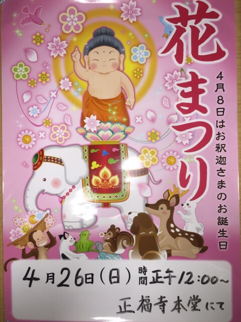 お釈迦さまのご誕生を祝う「花まつり」を4月26日(日)正午12時より行います。
