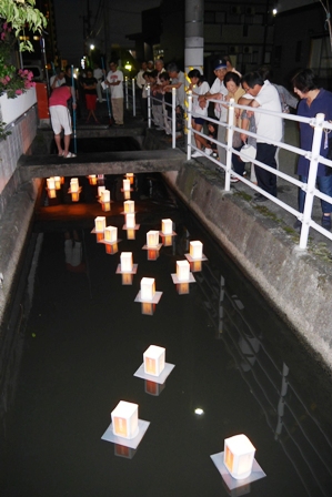 色々と試行錯誤はありましたが、順調に流れ出しました。暗闇の中、皆さんご自身のご先祖の灯籠を見つけ目で追います。